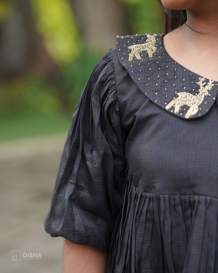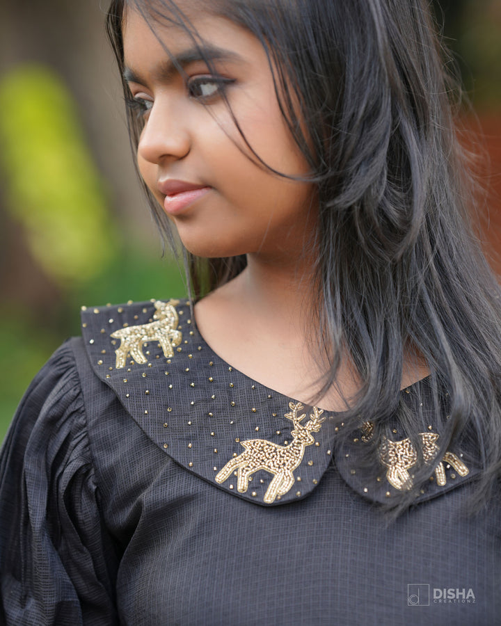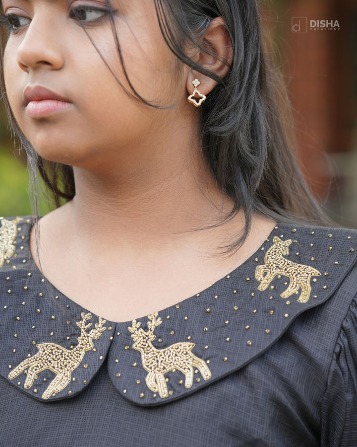| Special feature | Hand-Embroidered Gold Reindeer Collar |