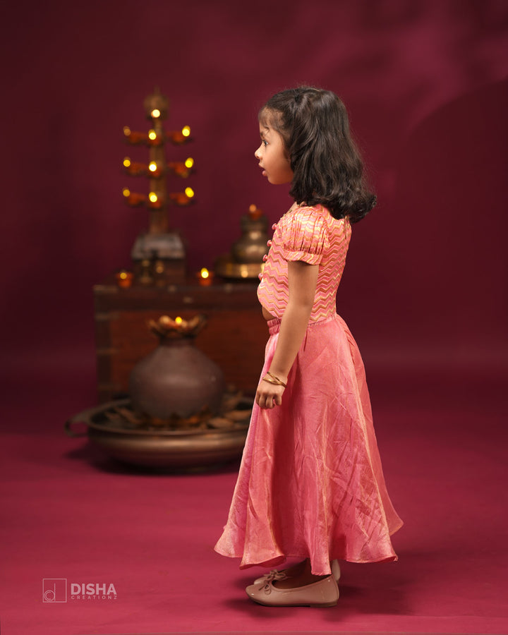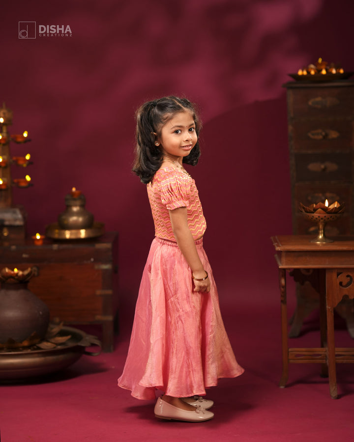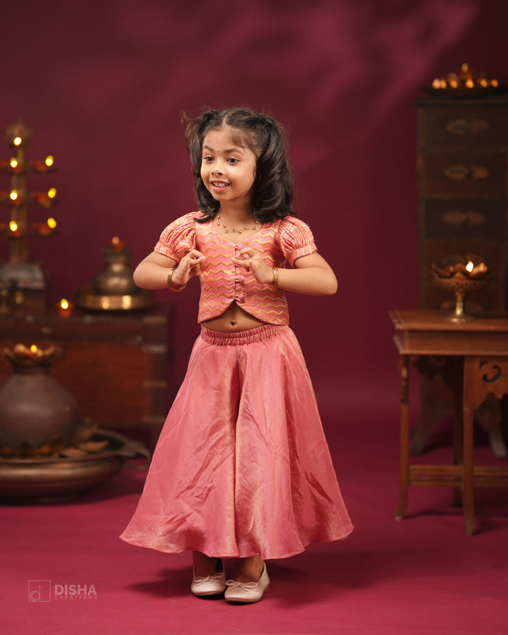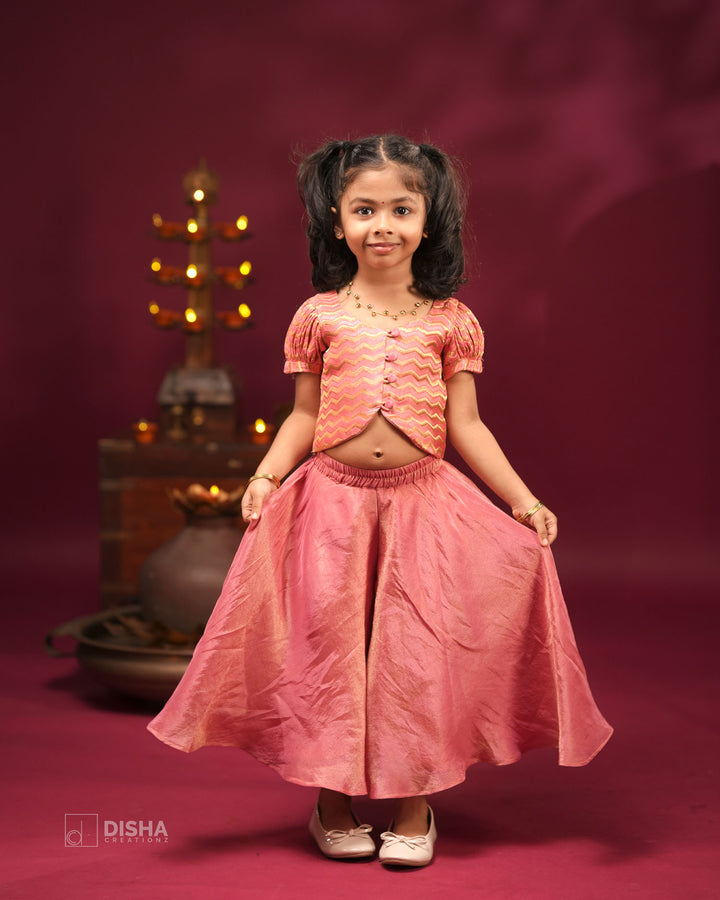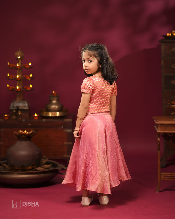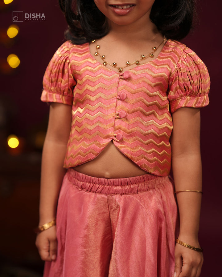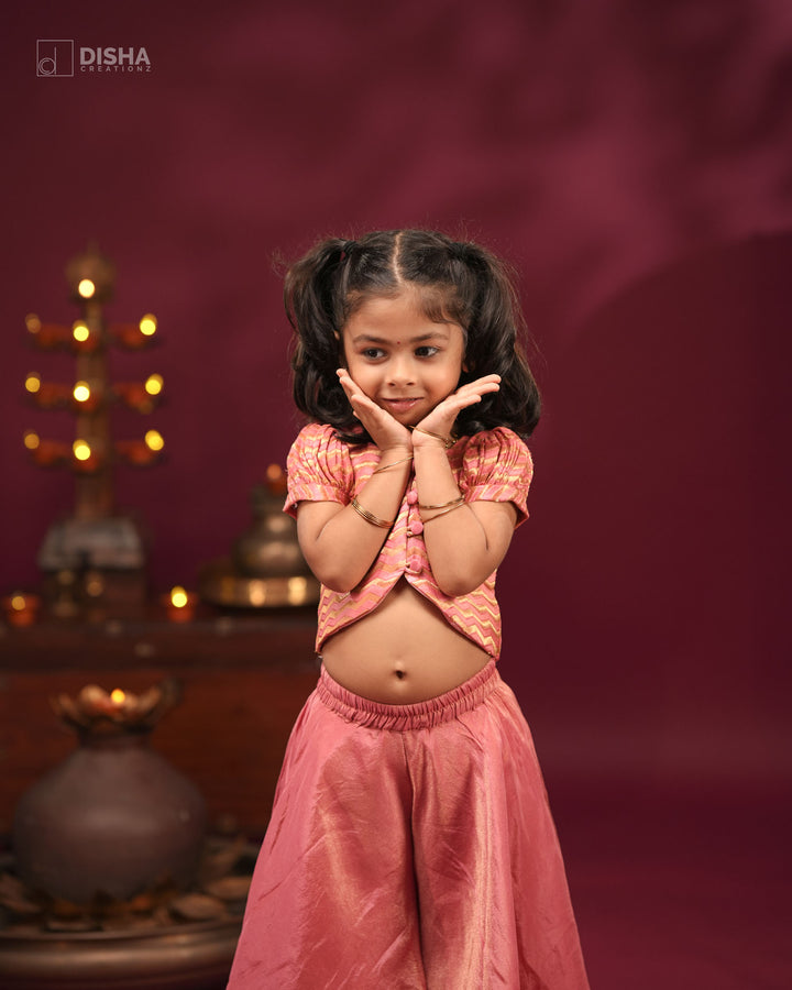 Onion Pink Tissue Silk Palazzo with Banarasi Satin Zigzag Crop Top – Festive Wear for Diwali & Navratri